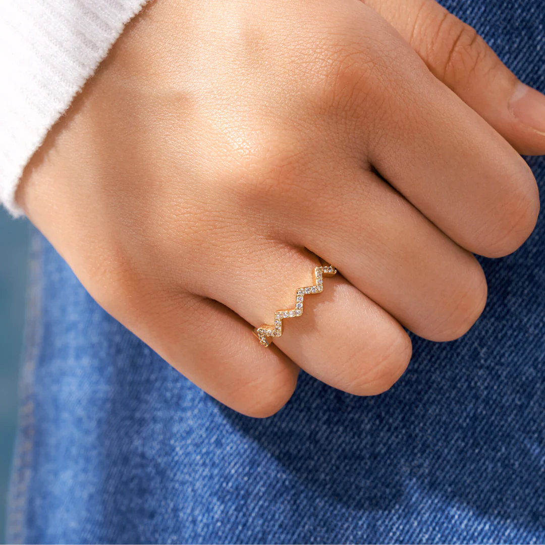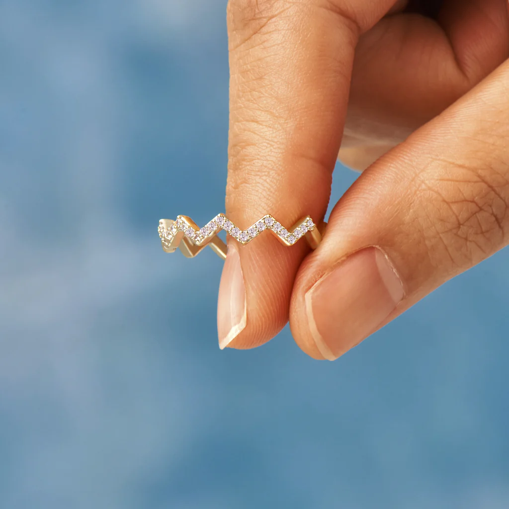 This wave ring beautifully symbolizes the highs and lows in life